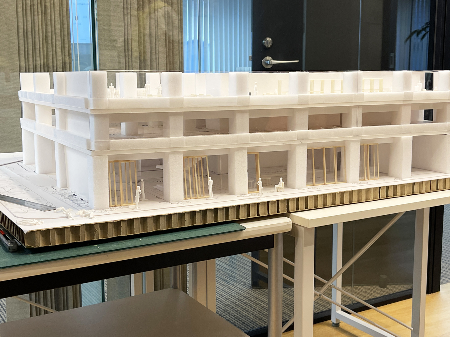 安井建築設計事務所 東京事務所は社屋の移転に伴い社内コンペを開催、20案ほどが社内スタッフより提案され、オフィスの1階を大胆にまちにひらく案が採用された。1階をまちにひらくことを想定して設計された建築は数多くあるものの、空間だけでなくリアルな使われ方として具現化していくために、弊社が基本計画時からアドバイスを行うこととなった。